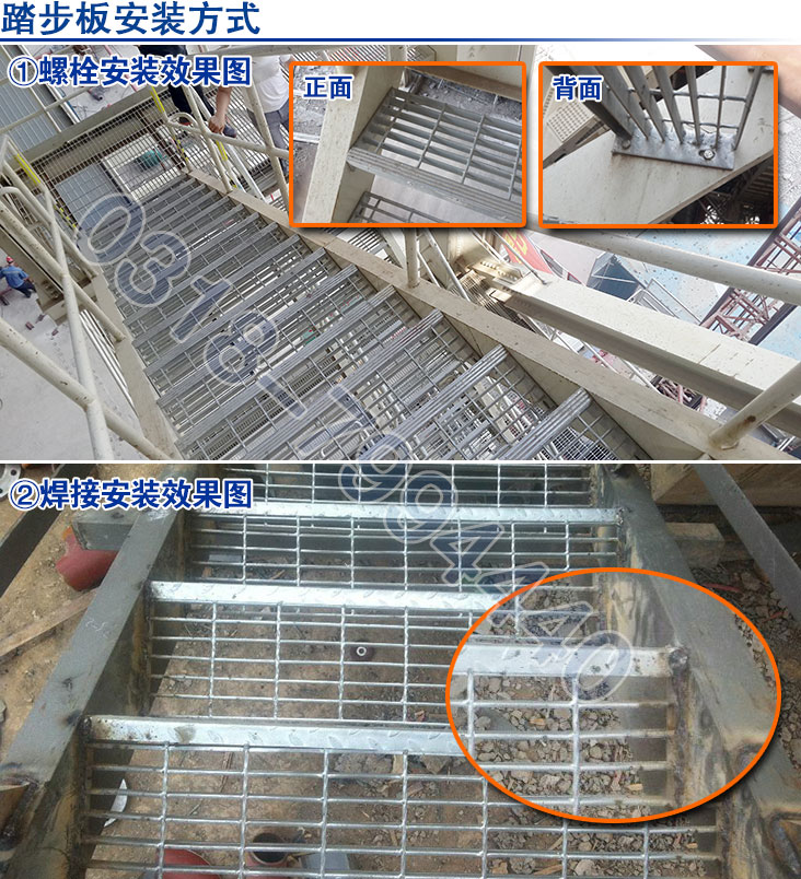 (3)T3踏步:由承載扁鋼和橫桿按照特定的比例焊接而成的,帶有前防護(hù)板,防止滑倒。